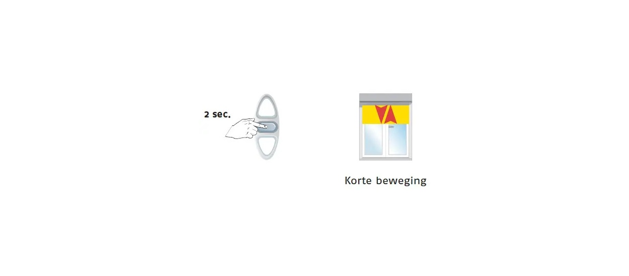 Gaat het rolluik omlaag? Ga dan naar 3. Gaat het rolluik omhoog? Druk dan de middelste knop 2 á 3 seconden in (zie afbeelding). Na deze handeling zal het rolluik kort op en neer gaan. Controleert de draairichting. Als deze goed is, ga dan naar 3.